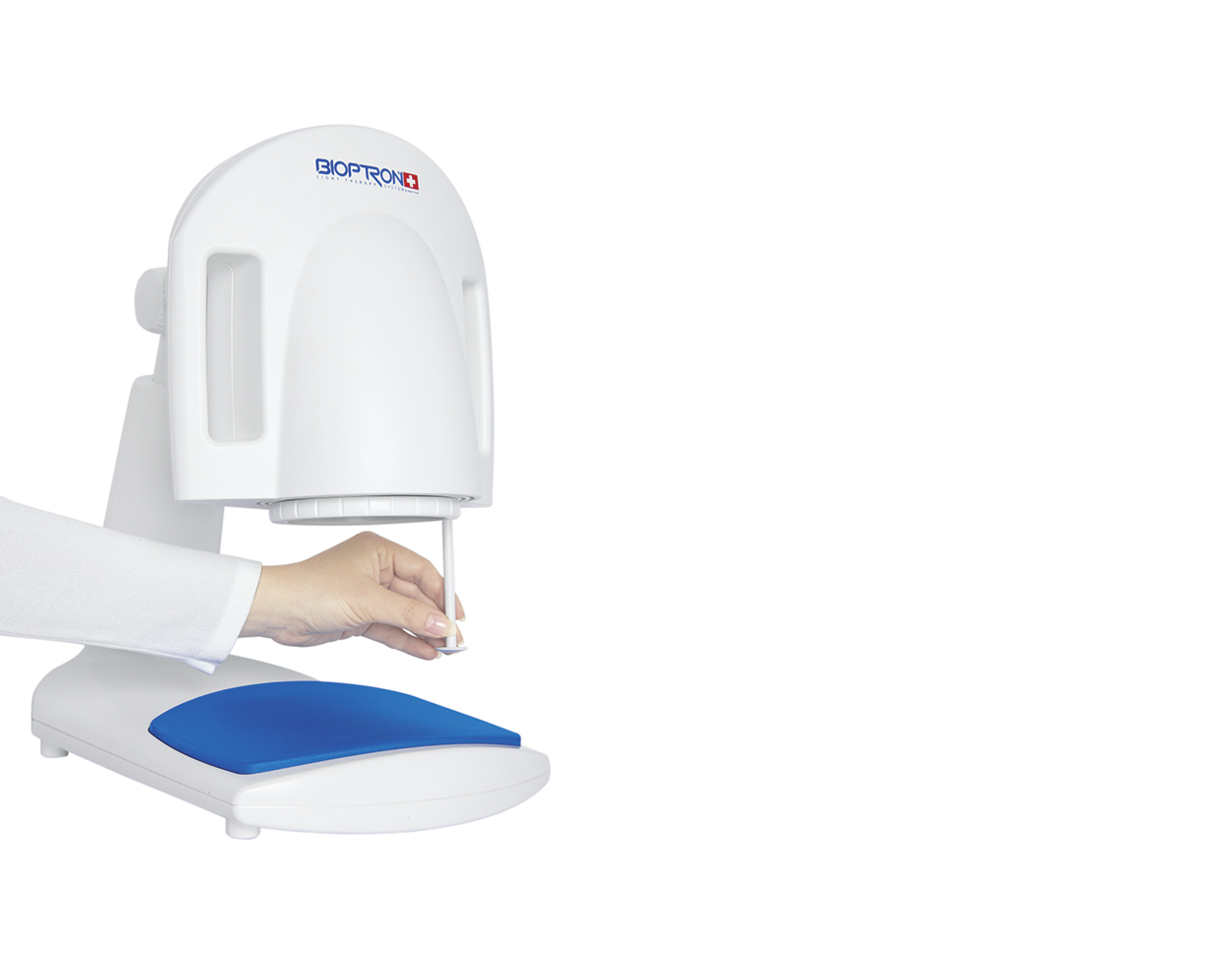 Priemer filtra BIOPTRONU Pro 1 (cca 11 cm) umožňuje ošetrenie malých i veľkých častí ľudského tela. S novou funkciou režimu spánku udržiavajte váš BIOPTRON stále pripravený na použitie, s takmer nulovou spotrebou energie.