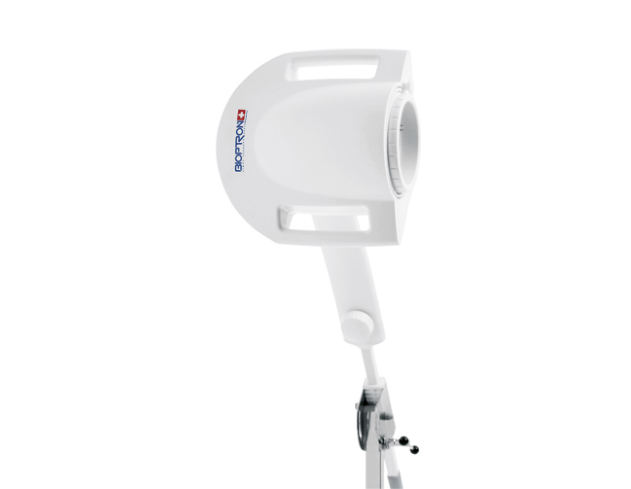 Prístroj je k dispozícii s funkčným podlahovým stojanom a/alebo s ergonomickým stolovým stojanom pre variabilné používanie v domácom i profesionálnom prostredí. Jednoducho nastaviteľná výška a natočenie hlavice, ako aj možnosť otáčať prístrojom v uhle 360° umožňuje používanie prístroja v takmer každej polohe. Čas ošetrenia sa dá pohodlne nastaviť na kontrolnom paneli a vstavaná mierka zaručí správnu vzdialenosť hlavice od pokožky. Stolový stojan je dodatočne vybavený ochrannou tkaninou proti prachu a podpornou podložkou (je dezinfekčná, vymeniteľná a umývateľná).